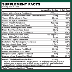 Once daily vegan multivitamin for women from whole food sources to support optimal health, energy and immunity.